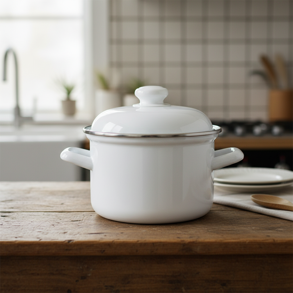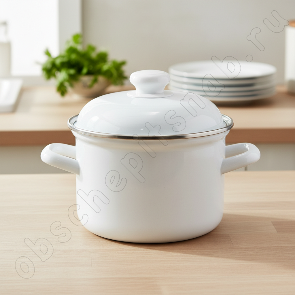 Кастрюля эмалированная с крышкой 1,5 л (диаметр 14 см, высота 11 см).
