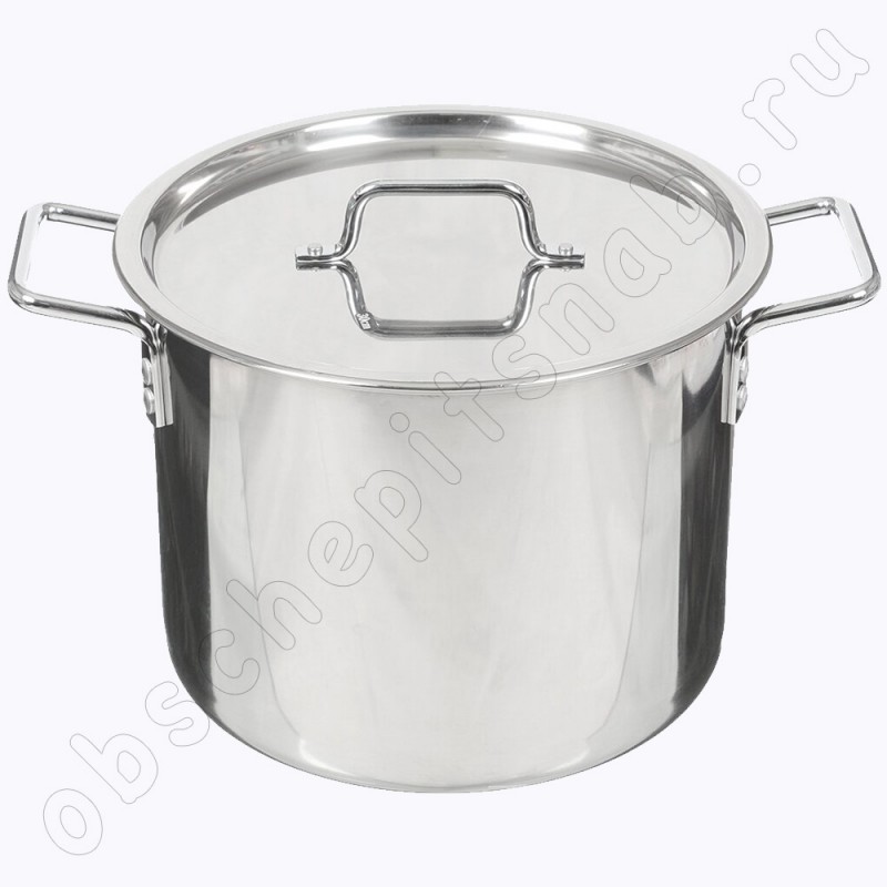 Металлическая кастрюля из нержавеющей стали с толстым дном 15 л. клепаные ручки (30см) КТ-ОБ-15К и другие металлические кастрюли купить оптом и в розницу по выгодной цене с доставкой по России можно в нашем интернет магазине "Общепитснаб" .