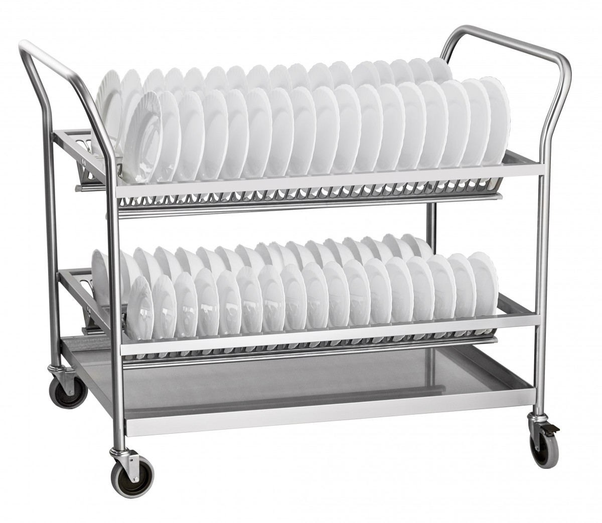 Тележка для сушки тарелок ТСТ-100 используется в качестве межоперационного транспортного средства для перевозки тарелок на предприятиях общественного питания.