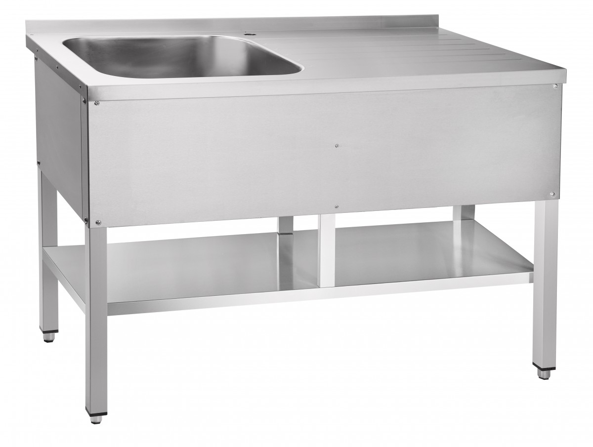 Столы для мойки овощей СМО предназначены для использования в качестве вспомогательного оборудования на предприятиях общественного питания Характеристики: - 1 полка; - разборная конструкция; - оснащена сифоном и имеет пристенный буртик; - регулируемые по высоте ножки с резиновыми вставками.
