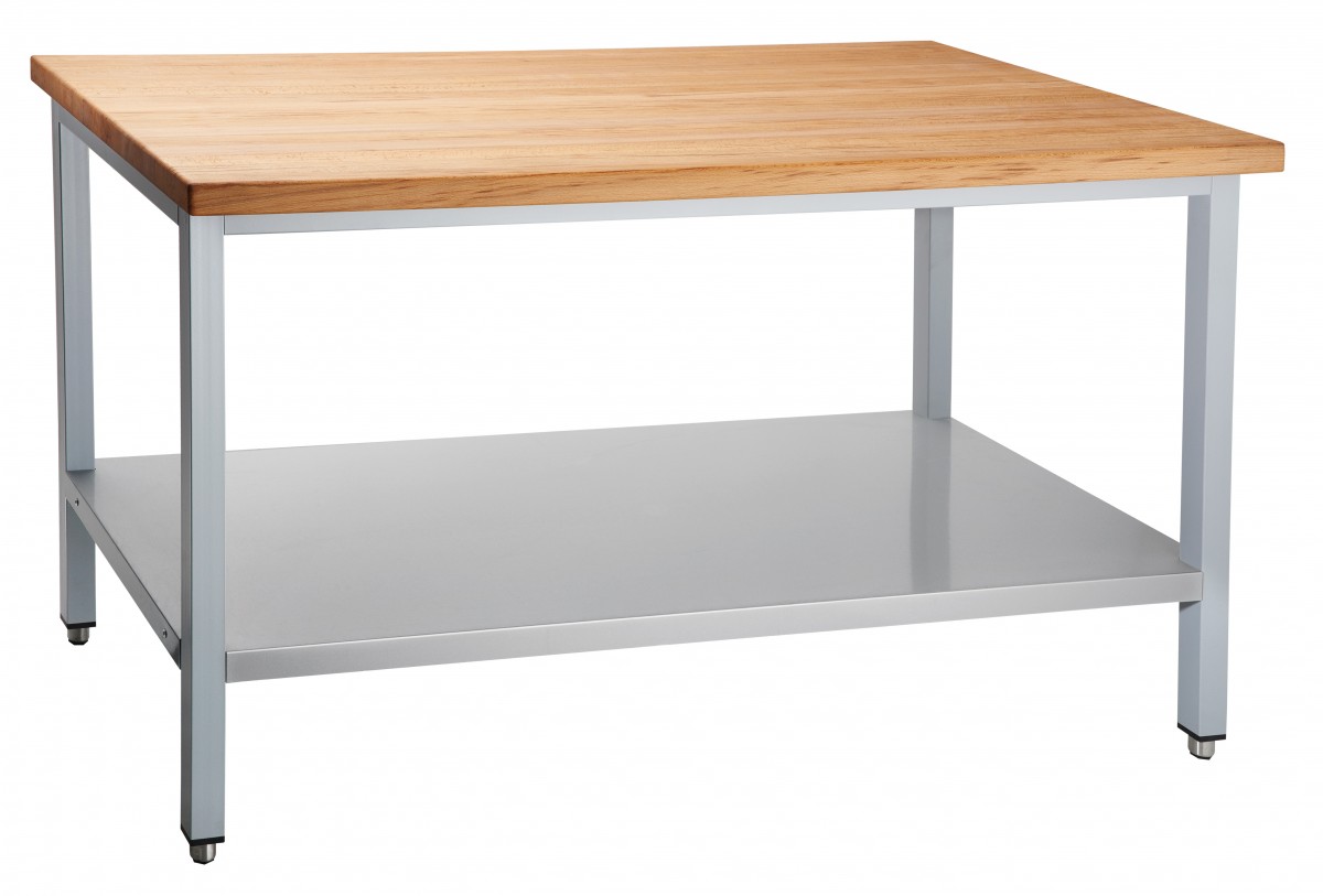 - столешница выполнена из массива дерева (бук); - каркас из крашеной стали; - выдерживает большие нагрузки и имеет долгий срок службы; - регулируемые по высоте ножки с резиновыми вставками.
