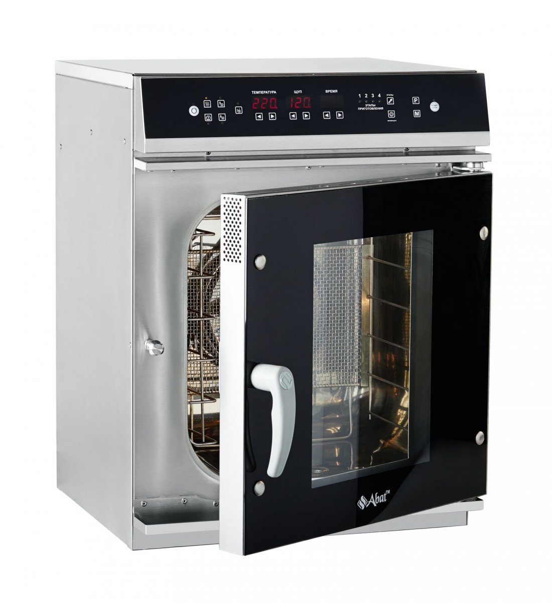 - двухходовый механизм открывания дверцы духовки обеспечивает безопасность персонала от воздействия горячего пара