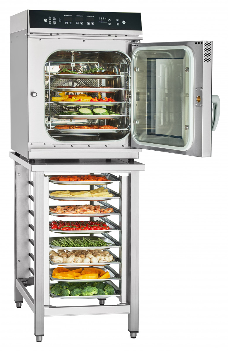 Мини-пароконвектомат ПКА-6-1/2П удобен как для стационарного использования, так и для выездных мероприятий, и совершенно незаменим для небольших кухонь и кафе. Удобство использования пароконвектомата ПКА-6-1/2П оценят и те, кто уже использует большие пароконвектоматы и хочет приобрести к ним компактного помощника, а также и те, кто ни разу не имел удовольствия готовить на пароконвектоматах. При малой себестоимости и габаритах аппарат сохраняет все достоинства обычного пароконвектомата, что делает его уникальным и необыкновенно доступным. ПКА-6-1/2П - скорый и надежный помощник на кухне, который позволит Вам открыть для себя мир пароконвектоматов.