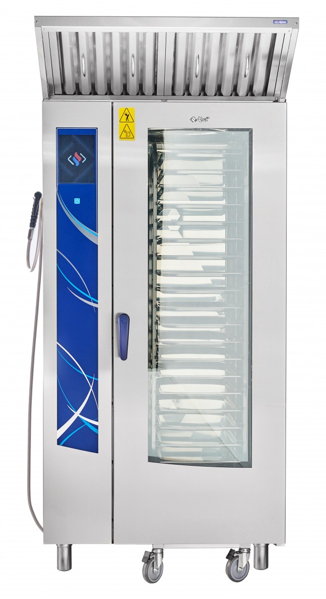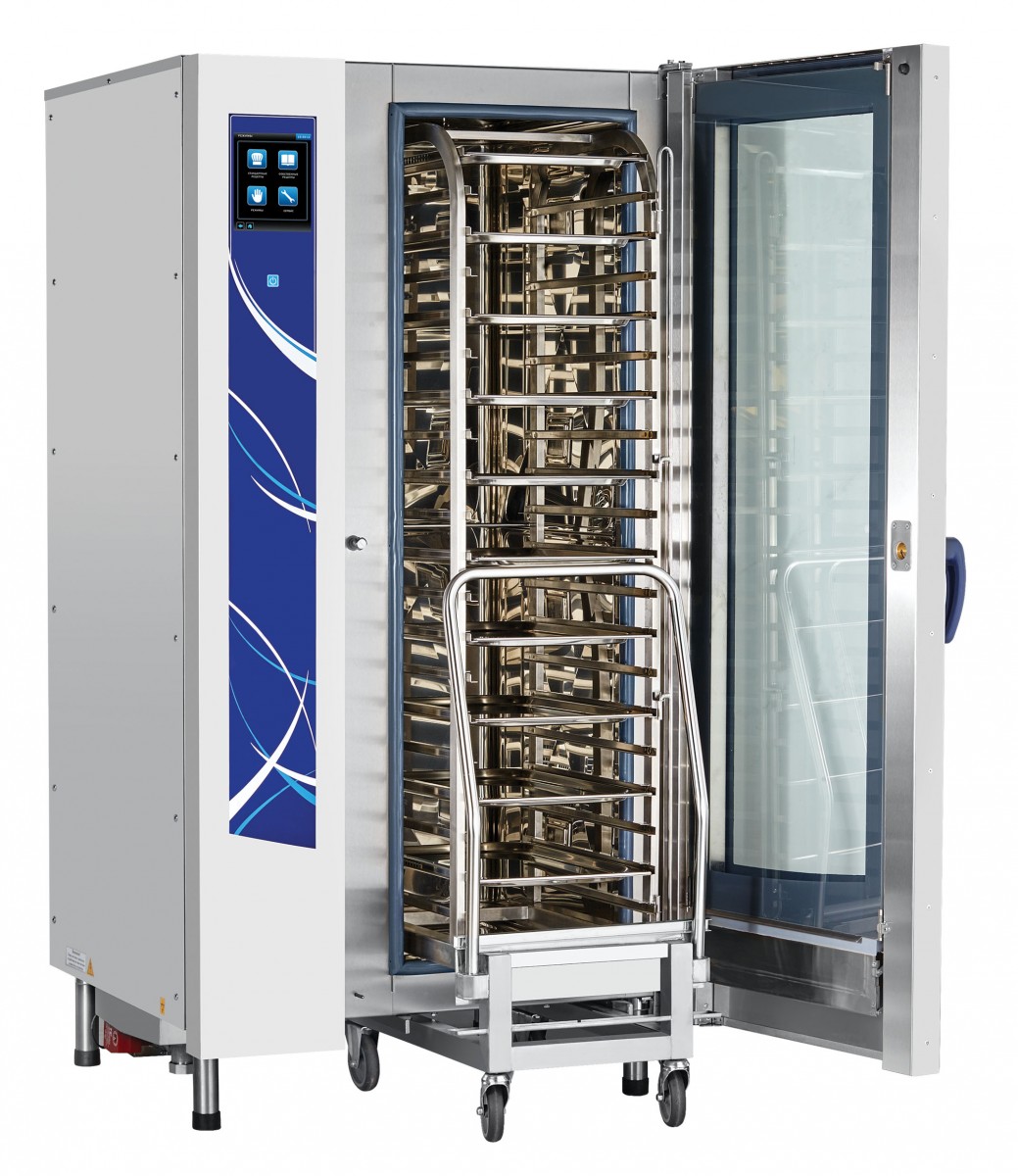 Современная электроника обеспечивает быстрый выход пароконвектомата на рабочий режим. Низкое энергопотребление (по сравнению с аналогами) снижает эксплуатационные расходы на приготовление блюд без снижения их качества. Возможен режим отложенного старта.