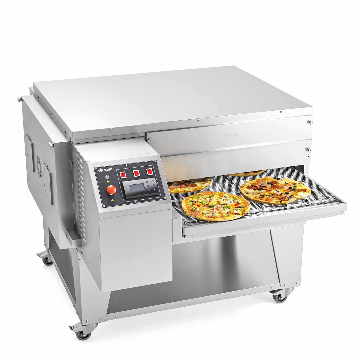 Конвейерная печь для пиццы ПЭК-800/2 Abat предназначена для непрерывного выпекания различных видов хлебобулочных изделий и блюд, начиная от традиционной пиццы до осетинских пирогов, лазаньи, сэндвичей, овощей, сырников и даже куриных крылышек.
