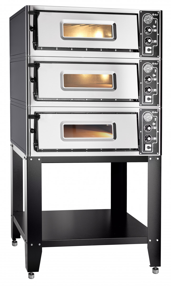 Конструкция печи позволяет установку в несколько ярусов, что позволяет увеличить производительность заведения, при этом экономя рабочее пространство кухни. Также печь может быть установлена на подставку ПП-4.