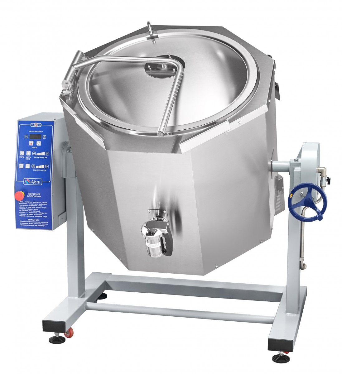 Котел пищеварочный электрический с функциями перемешивания и ручного опрокидывания КПЭМ-100-ОМР-ВК предназначен для приготовления бульонов, первых, вторых и третьих блюд. Используется на предприятиях общественного питания самостоятельно или в составе технологических линий.