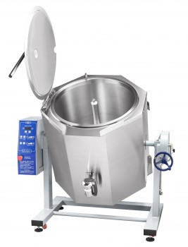 Котел пищеварочный электрический с функциями перемешивания и ручного опрокидывания КПЭМ-160-ОМР-ВК предназначен для приготовления бульонов, первых, вторых и третьих блюд. Используется на предприятиях общественного питания самостоятельно или в составе технологических линий.