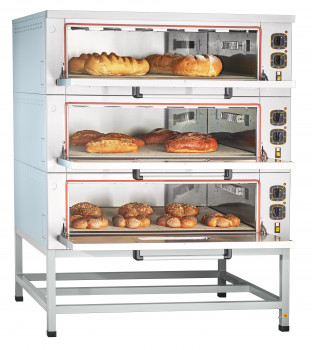 Пекарский электрический шкаф ЭШП-3-01КП с каменным подом и функцией пароувлажнения предназначен для выпечки кондитерских и хлебобулочных изделий на предприятиях общественного питания самостоятельно или в составе технологической линии.