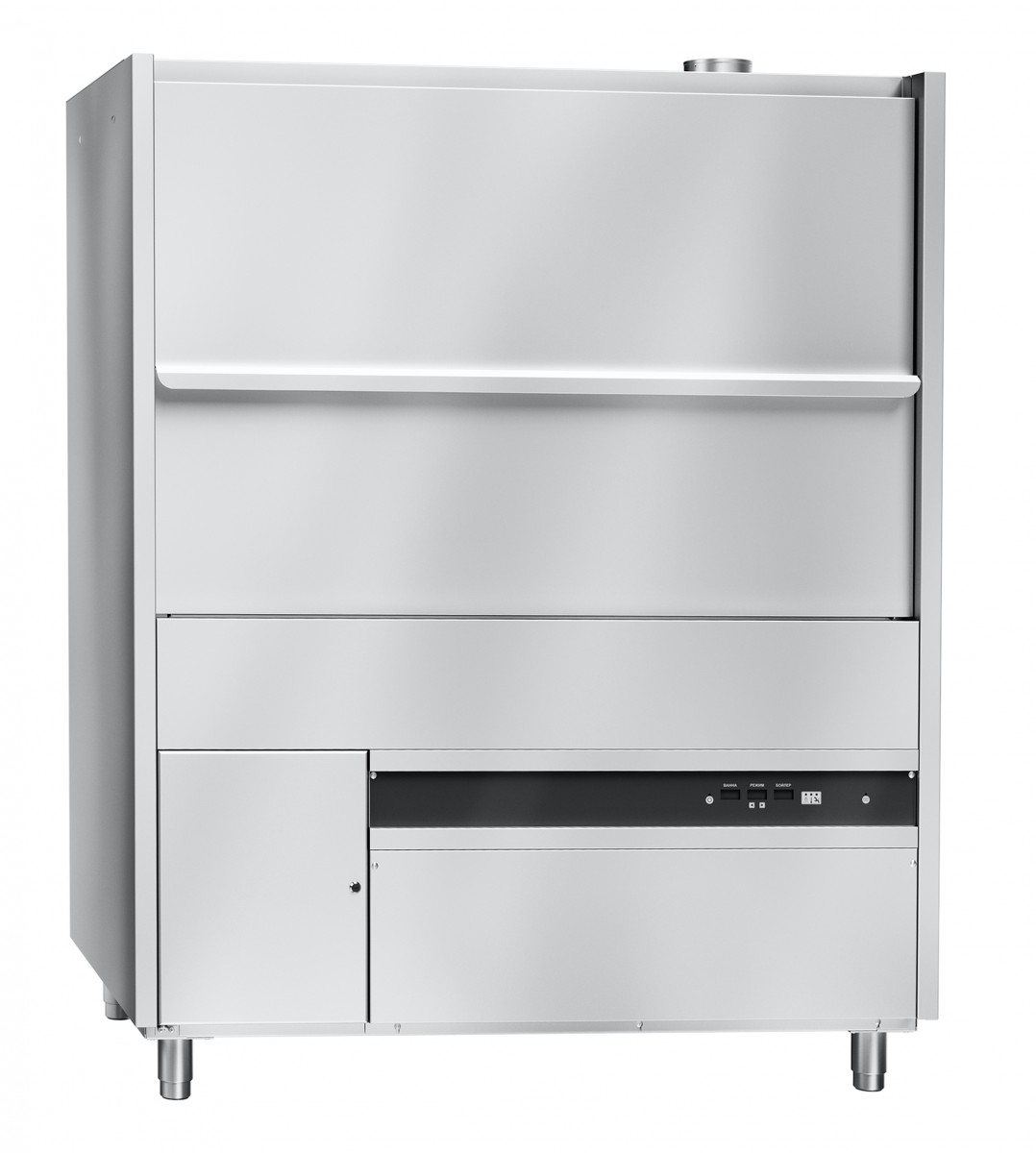 - 2 дозатора (моющий и ополаскивающий) - 2 насоса (мойки и ополаскивания) - выкатная тележка с роликами