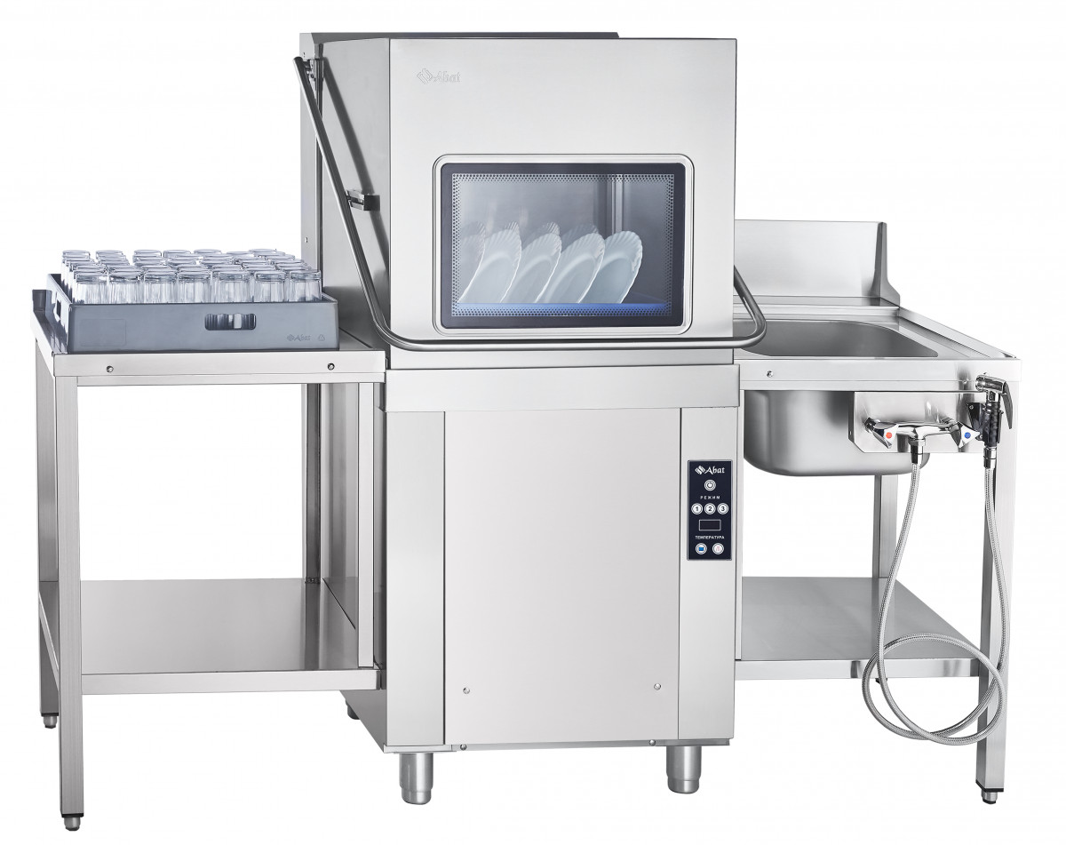 Для мытья тарелок, стаканов, столовых приборов и подносов на предприятиях общественного питания с числом посадочных мест 50, а также с большим числом мест, при условии, что количество обрабатываемой посуды не превышает производительности машины. Конструкция машины позволяет использовать ее как при горячем, так и при холодном водоснабжении.