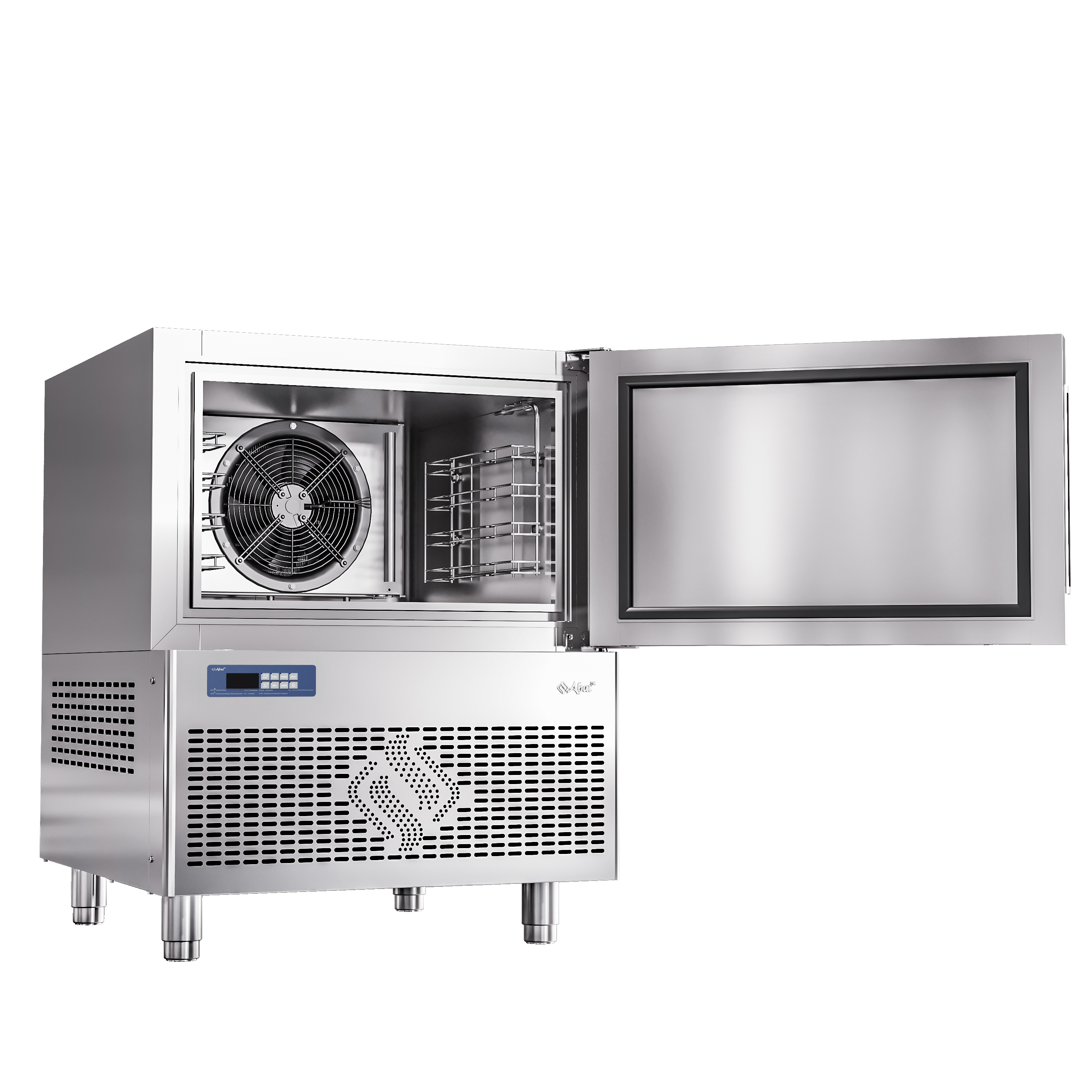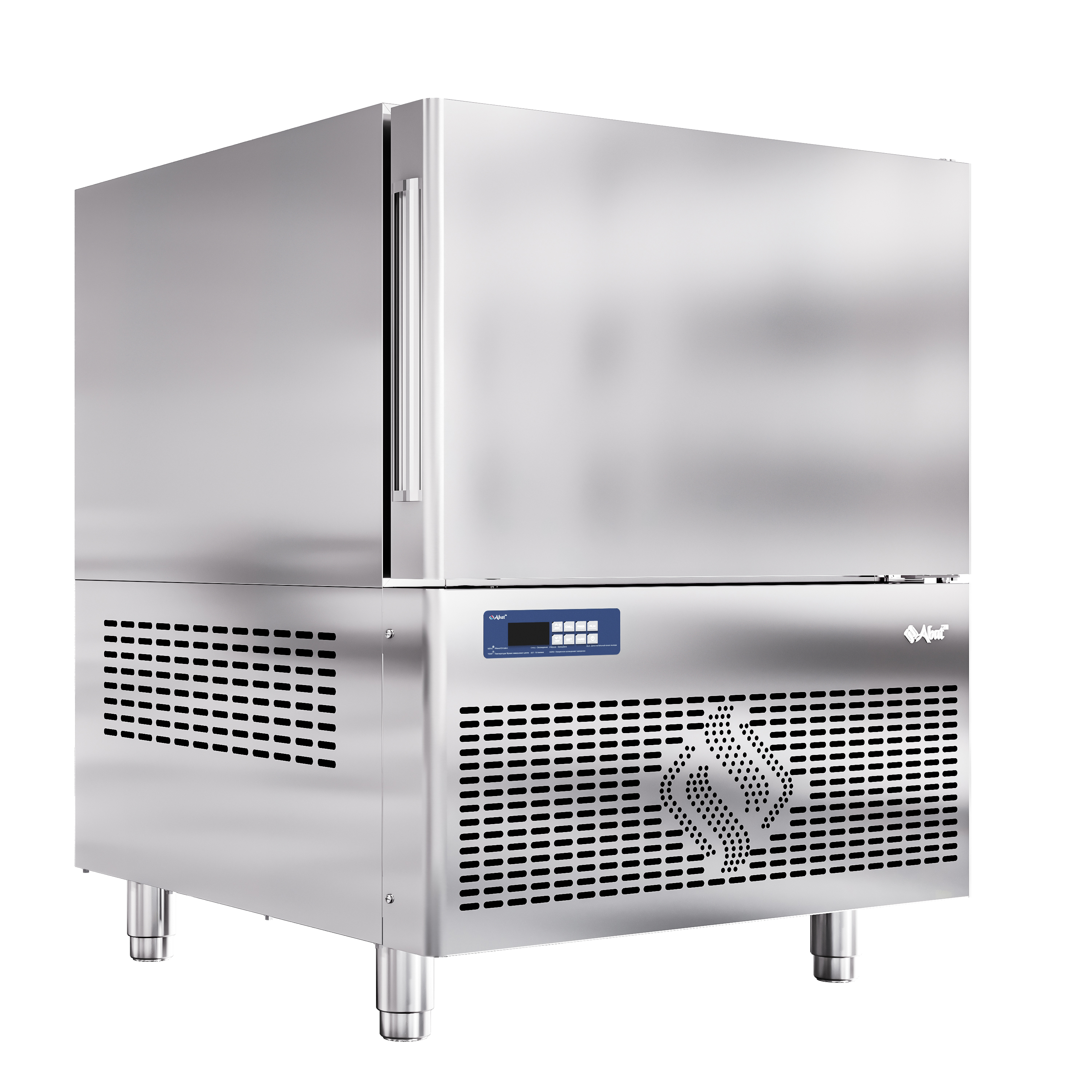 Отличительной особенностью аппаратов интенсивного охлаждения (шоковой заморозки) является использование в них системы эффективной принудительной вентиляции (воздухоохладителя с вентилятором, который обеспечивает равномерное распределение температуры внутри полезного объема камеры). Благодаря такой конструкции продукты, размещенные на полках, быстро охлаждаются в потоке холодного воздуха.