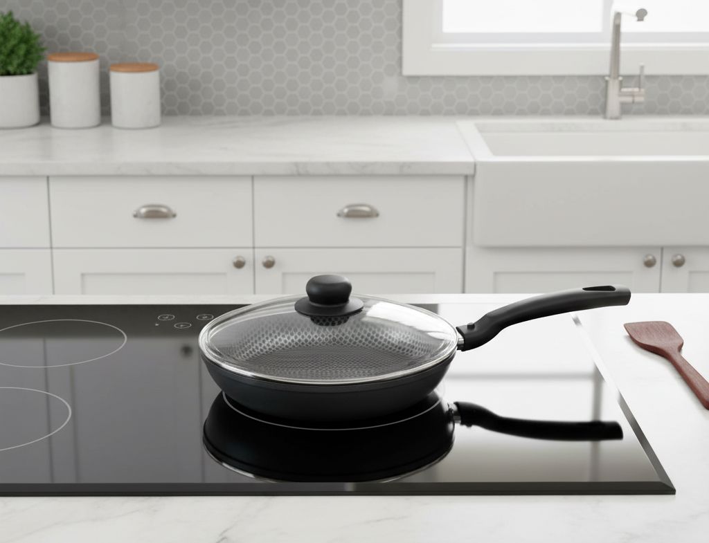 Съёмная пластиковая ручка удобно лежит в руке и экономит место при хранении. Сковорода подходит для газовых, электрических и стеклокерамических плит, а также безопасна для мытья в посудомоечной машине. Оптимальная высота стенки 4,5 см делает её идеальной для жарки, тушения и лёгких овощных рагу.