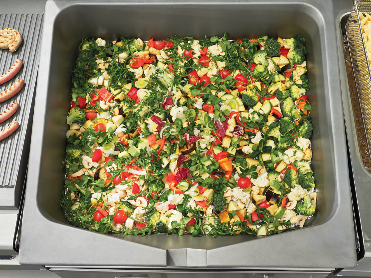 Сковорода имеет плавную регулировку температуры жарочной поверхности в диапазоне 100-340 С. Нагрев осуществляется горелкой, равномерно распределяющей тепло по поверхности чаши. Дно чаши толщиной 10 мм позволяет надежно удерживать тепло в режиме приготовления. Сковорода снабжена механизмом подъема и опускания чаши, что обеспечивает удобство очистки и обслуживания сковороды. Крышка предотвращает потерю тепла и фиксируется в любом положении. Боковая и задняя обшивки изготовлены из крашенного оцинкованного металла. Сковорода имеет регулируемые по высоте ножки.