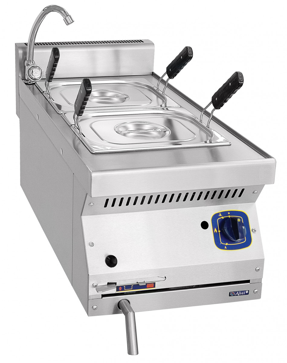 Удобные ручки позволяют быстро и безопасно вынимать корзины с готовыми продуктами из воды. Регулируемые по высоте ножки. Слив воды осуществляется из крана, расположенного на передней панели газоварки.